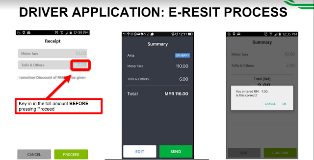 Dengan Grab, Grab Driver harus ingat setiap toll yang dilalui. Masa dropoff passenger, key in jumlah toll di bahagian Tolls & Others dalam e-resit.
